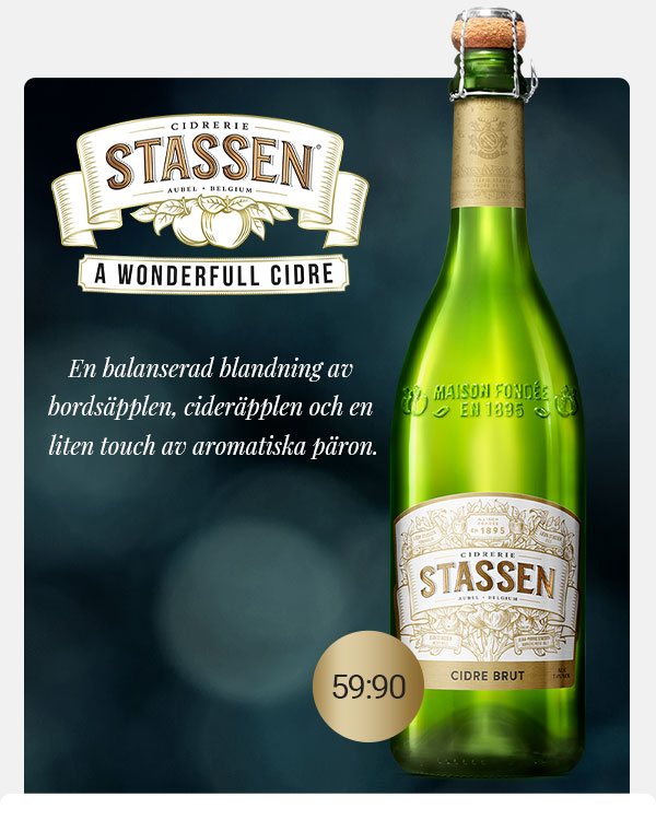 | Hyllade Cidrerie Stassen lanserar bubblig nyhet lagom till nyår! Den prestigefulla belgiska cidertillverkaren Cidrerie Stassen utvidgar sitt sortiment i Sverige och lanserar Stassen Cidre Brut - en elegant och krispig cider med fräsch smak av äpple. Nu lanseras Stassen Cidre Brut – en bubblig premiumcider från Belgien. Den uppfriskande cidern är resultatet av en balanserad blandning av bordsäpplen, cideräpplen och en liten touch av aromatiska päron. Smaken är krispig men samtidigt len med en uppfriskande smak av äpple. | | Stassen Cidre Brut Stassen Cidre Brut har en klar, ljust gyllene färg. De eleganta bubblorna lämnar en lätt kittlande känsla i munnen och doften av äpple av och vita blommor ger en fräschör redan från start. Smaken är frisk och lite lätt stickande med mjuka tanniner. En behaglig bitterhet följs av fruktiga toner och en lång, sofistikerad finish med smak av nyplockade äpplen. Under de kommande högtiderna fungerar Stassen Cidre Brut genomgående från aperitif till dessert. | | Stassen Cidre Brut är en stilenlig cider tillverkad av exceptionellt fina äpplen från lundarna i Aubeldalen och Liègedalen i östra Belgien, kända för sin kalkstensrika jord som ger äpplena en speciell karaktär, väl lämpad för just ciderproduktion. Stassens cider är resultatet av autentiskt hantverk som förfinats under fyra generationer sedan 1895. Stassen Cidre Brut är ett förträffligt alternativ till champagne vid festliga tillfällen. Du behöver inte tumma på varken smak, känsla eller kvalitet men får samtidigt ett smakrikt, festligt och alkoholsvagare alternativ Linda Hellman marknadschef Heineken/ GL Brands. | | | | Namn: Stassen Cidre Brut Ursprung: Belgien Artikelnummer: 82969 Alkoholhalt: 7,4% Volym: 750 ml Pris: 59.90 kr Importör: GL Brands AB | | |