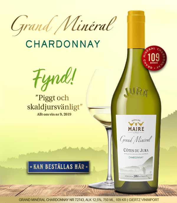 | Utsökt Chardonnay från anrikt vinhus Grand Minéral Chardonnay är ett elegant och mycket friskt vin från trendiga Jura med smak av gröna äpplen, citrus och mineraler. Vinet är gjort på 100 % chardonnay och är på många sätt ett uttryck för det moderna Jura – högkvalitativa, välbalanserade och mångfacetterade viner med bitig mineralitet. Beläget mellan Bourgogne i väst och Schweiz i öst är Jura en region som stigit till toppen av popularitet inom sommelier-kretsar och det är inte konstigt varför. Den bergiga alpomgivningen och begränsade vinodlingen gör Jura till Frankrikes allra minsta vinregion, väldigt mycket mindre än grannen Bourgogne. Däremot är de två regionerna lika på så sätt att de har samma rika jord av kalksten och lera och en optimal altitud för friska viner. De delar också chardonnay och pinot noir som de två största druvorna. Grand Minéral Chardonnay passar utmärkt som aperitif, till skaldjur eller ihop med några av Juras utsökta ostar; Comté, Morbier och Mont d'Or. Servera Grand Minéral Chardonnay vid 8–10°C. |