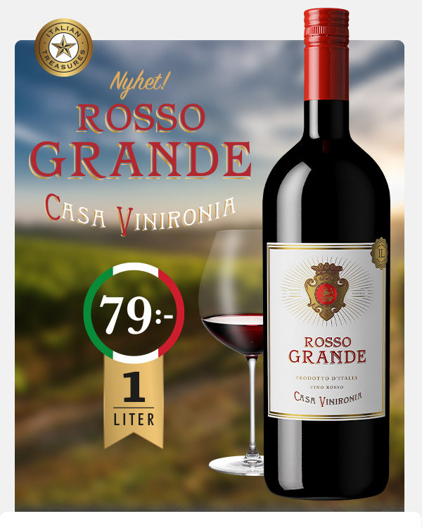 Nyheten Rosso Grande är ett smakrikt rött vin med en generös smak av saftiga mörka bär och kakao.