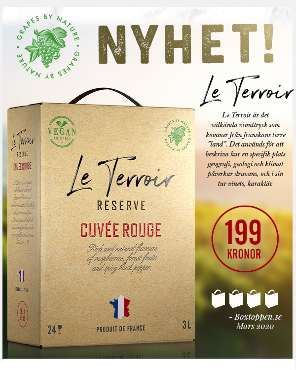 | Bäst prisade rödvinsboxen från Frankrike på Systembolaget! Letar du efter en stilren box med ett lika stilrent vin? Då har du kommit rätt! Äntligen lanserar vi Le Terroir Reserve på box för endast 199 kronor vilket gör vinet till den BÄST prisade rödvinsboxen från Frankrike på Systembolaget!