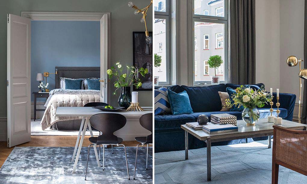 En vilsam palett av blå, gröna och grå nyanser skapar en fin och behaglig helhet...