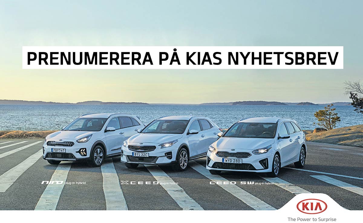 | MISSA INTE KIAS NYHETSBREV | | | | Kia är Sveriges tredje största bilmärke och samtliga bilar präglas av prisbelönt design, hög kvalitet och hög säkerhet. Och självklart ingår Kias 7 åriga nybilsgaranti från fabrik. Prenumerera på Kias nyhetsbrev för att ta del av våra nyheter, tävlingar och erbjudanden! | | |