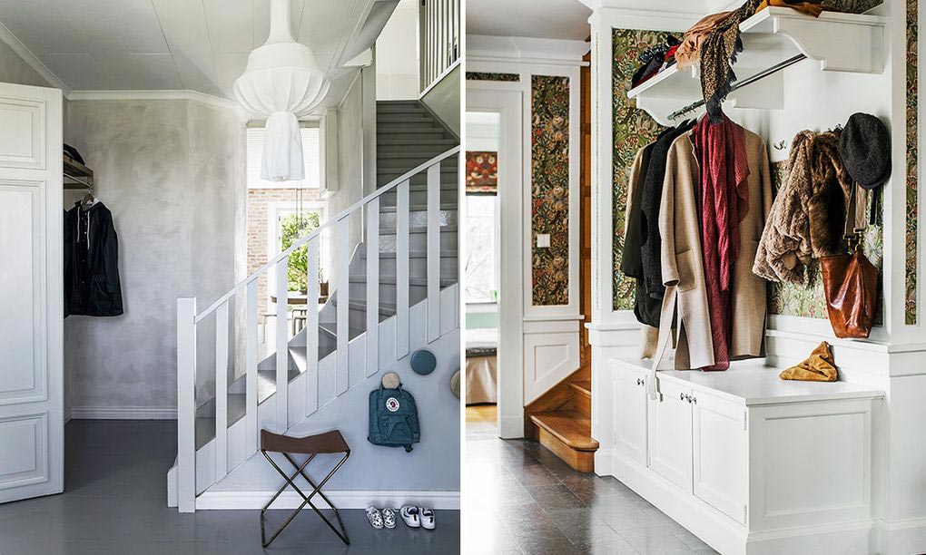 Mönstrad tapet, platsbyggd sittbänk eller klädstång i taket – förvandla hallen till ett av hemmets vackraste hörn...