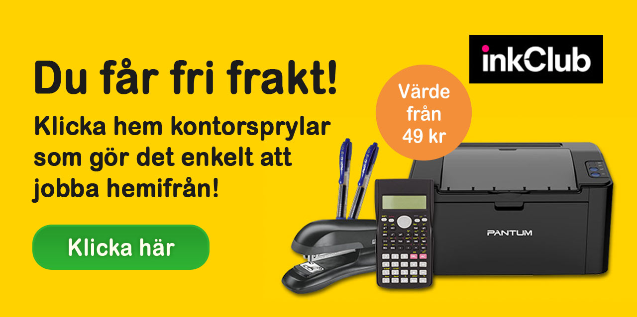 | Just nu fri frakt: Fyll på hemmakontoret med bläck, skrivarpapper, mm. | | | Klicka hem alla viktiga kontorsprylar som gör arbetsdagen smidigare där hemma. Just nu får du fri frakt (värde 49 kr) när du handlar valfria varor för minst 199 kr! Hos oss hittar du allt du behöver, bland annat bläckpatroner, skrivarpapper, block, pennor och mycket mer. Kom in och handla! Fri frakt - Klicka här | | |